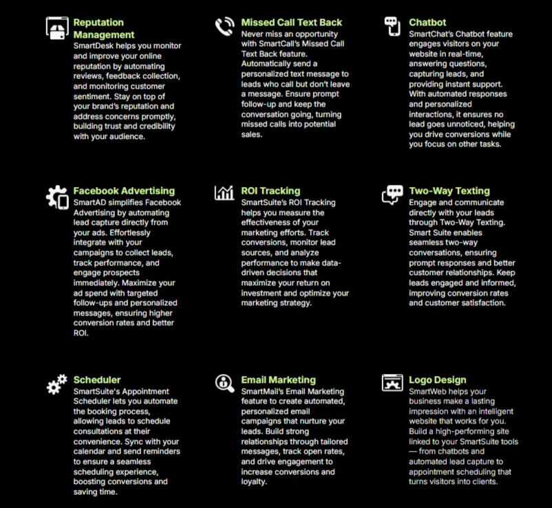 From calls to conversions, automate every step of your customer journey. SmartSuite turns conversations into clients while you focus on what matters most.